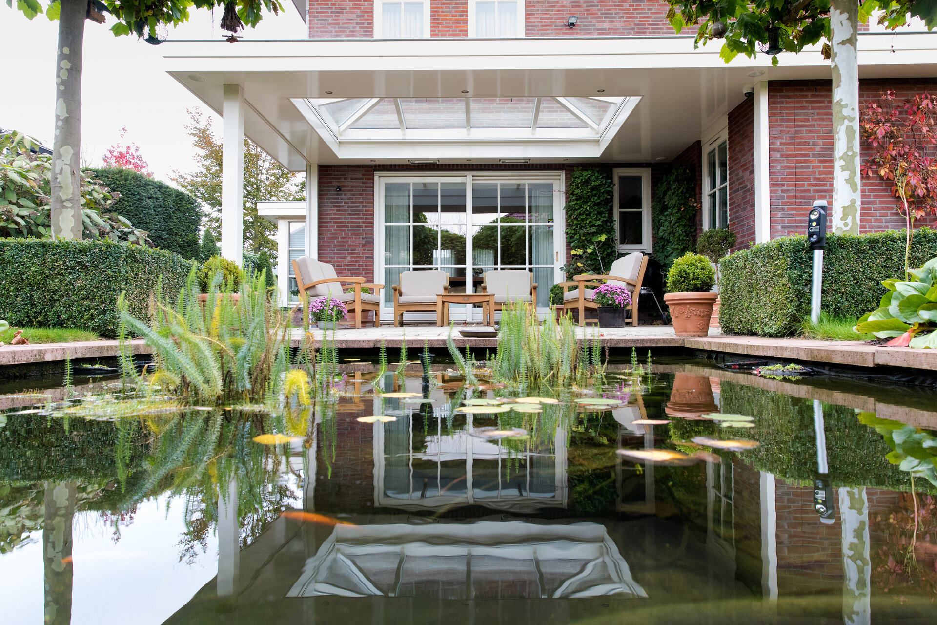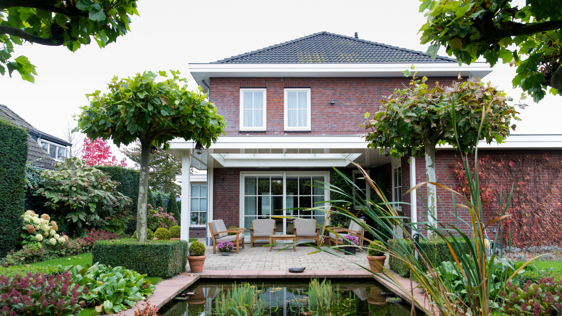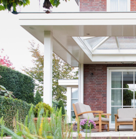 Voor deze woning realiseerden we een klassieke veranda die naadloos aansluit op de architectuur van het huis en de zorgvuldig aangelegde tuin. De lichte constructie en royale overkapping creëren een beschutte plek met vrij uitzicht over het water en het groen.